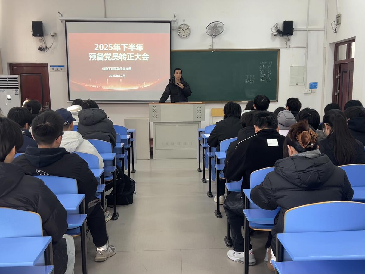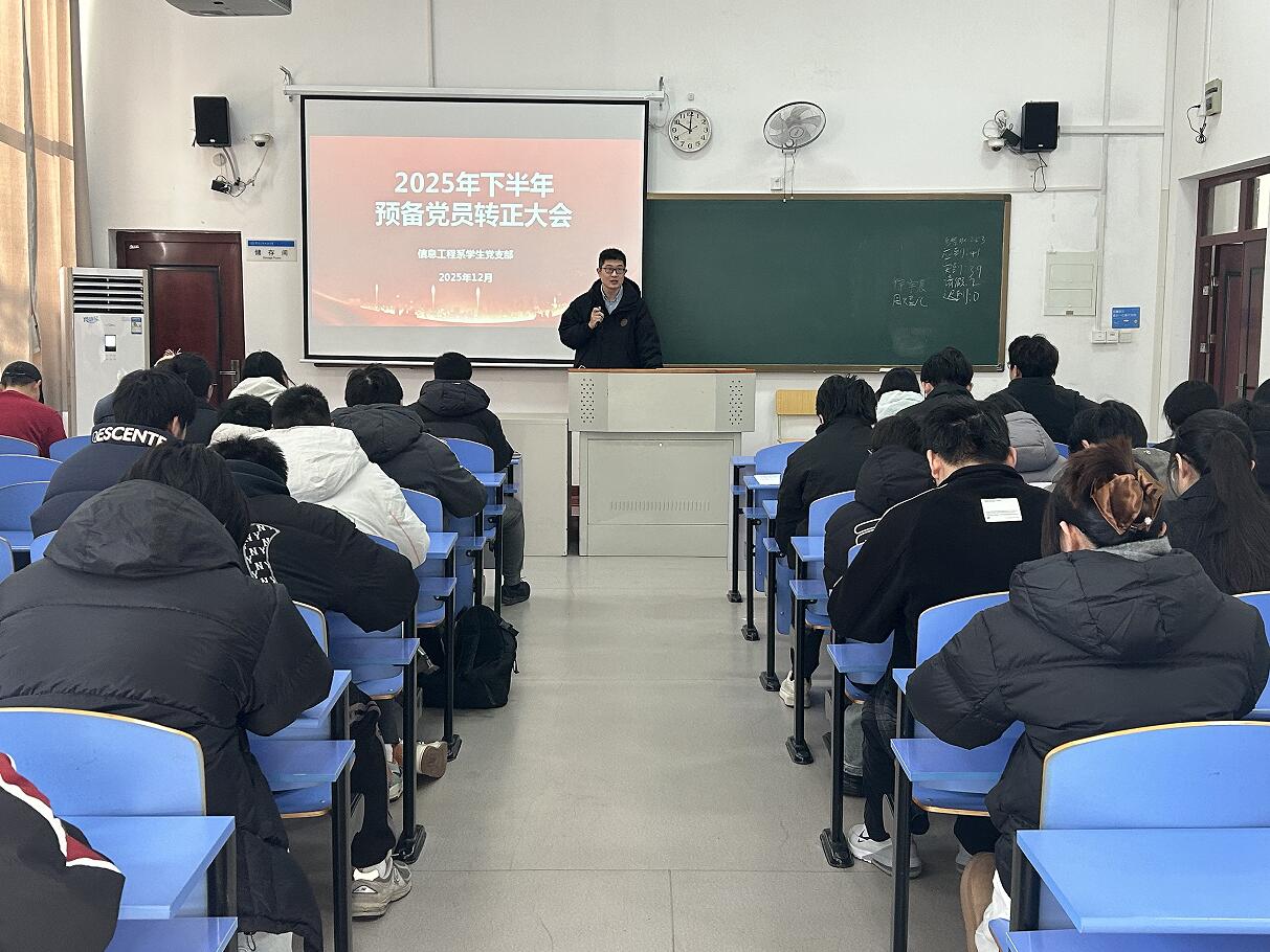 12 月 26 日上午,信息工程系学生党支部在 C111 教室(同步开通腾讯会议)召开党员大会,支部全体党员参会,重点推进 11 名新发展预备党员接收及 8 名预备党员转正工作。