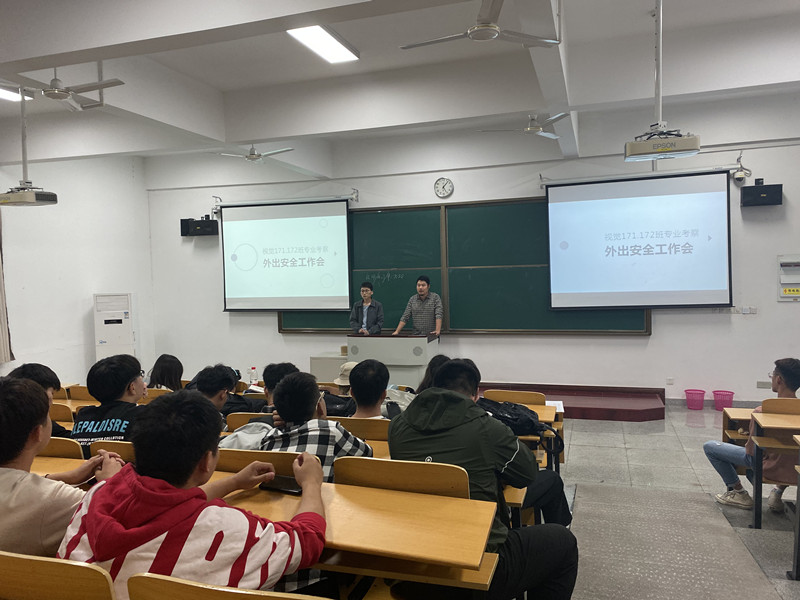 根据艺术系教学任务安排,视觉(怀)171、172两个班级将迎来时长为一周的外出考察,为进一步强化学生的安全意识和防范能力,艺术系黄春洋、陆冠东老师,辅导员穆岚老师于2019年10月11日为即将外出考察的学生们做了丰富而详细的安全教育工作。