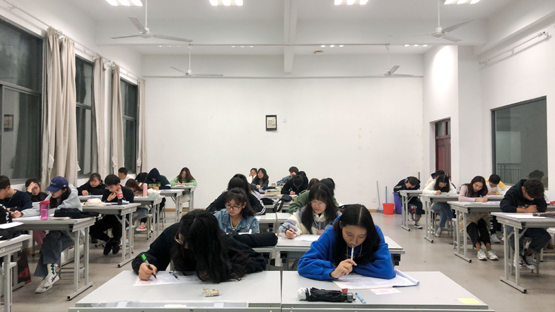 11月17日下午5点50,19级同学早早到达各自的考场,做好准备工作并签到,等候开考。六点考试准时开始。考场上,同学们奋笔疾书,态度严谨,仔细分析,认真作答;监考人员认真负责,尽全力维持考场秩序,为同学们营造良好的考试氛围,使得本次英语四级模拟考试顺利且有条不紊地进行下去。八点二十,同学们便准时交卷,且有序的离开考场。