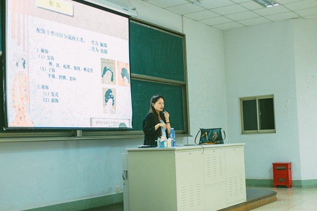 为了增强学生对传统服饰的了解,提高对中国画的欣赏能力和艺术修养。艺术学院与怀德学院艺术系于5月22日在白云校区南3阶举办了“唐代仕女服饰浅析”专题讲座。此次讲座由江苏省书法协会会员,郦虹老师主讲。2016级全体同学参加了此次讲座。
