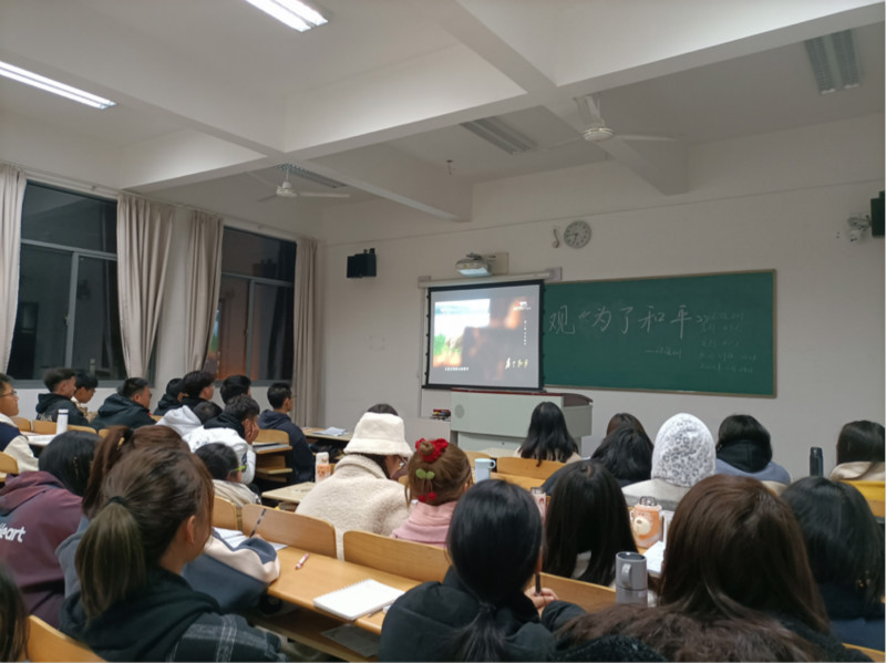 2020年11月底至12月初,全体20级同学集中观看纪念抗美援朝70周年纪录片《为了和平》,在A509教室展开。