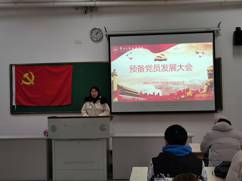 12月23日下午,艺术系学生党支部召开了预备党员发展大会。会议由党支部书记金超主持,全体正式党员、预备党员参加了会议。