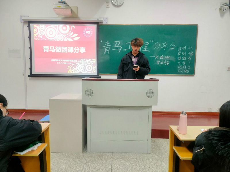 为提高同学们的思想道德修养,坚定理想信念,12月23日,艺术系顺利开展青马分享会。本次分享会由艺术系青马学员主讲,20级全体同学参加。