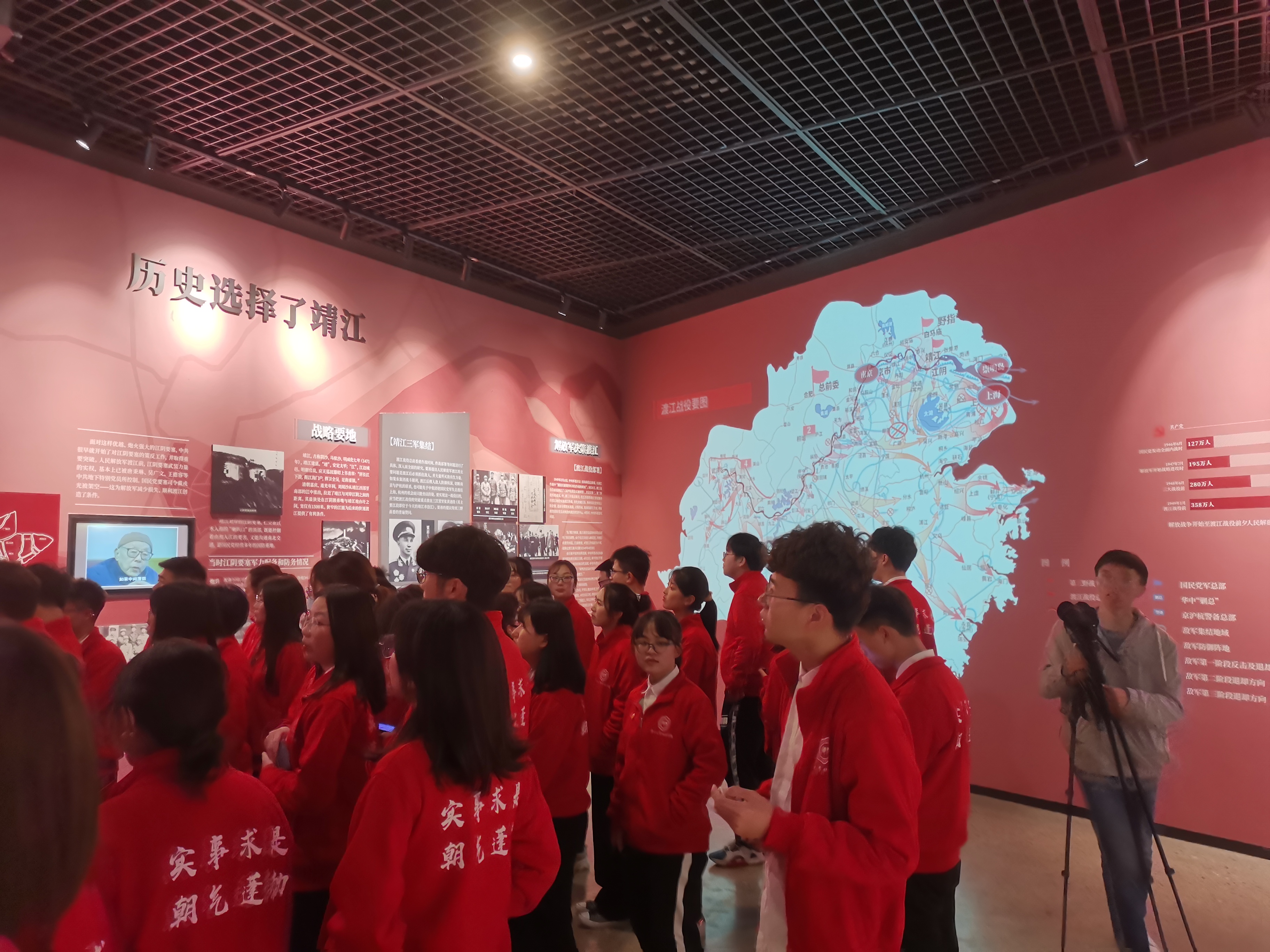 靖江烈士陵园坐落在靖江市孤山镇孤山西麓,由园前广场、前大厅、瞻仰道、纪念碑、纪念馆五大部分组成。踏进靖江烈士陵园,给他们的第一感觉是庄严肃穆,这里沉睡着的是革命英烈的亡魂,他们虽身死,但爱国的革命精神之火还在这片土地上燃烧着。艺术系的学生骨干们听着讲解员关于这些烈士的种种事迹以及他们曾经历过的一次次战斗,他们那种“为有牺牲多壮志,敢叫日月换新天”的大无畏精神感染着现场每一位同学。他们以他们的牺牲为子孙后代换来了和平,为中华民族的复兴强盛提供了和平发展的基础。那些镌刻在石碑上的名字,无愧于英烈之名,无愧于炎黄子孙之名。参加祭扫的同学说:“一个人只有不忘本,不忘恩,才能更好地立身处世,整个国家也会民风淳朴,兴旺发达。”祭扫烈士,于无声之中聆听关于爱国本质的教育,爱国的本质就是爱国二字,无关其他,这也是流淌在每一个中国人骨子里和血液里无法抹去的传承。