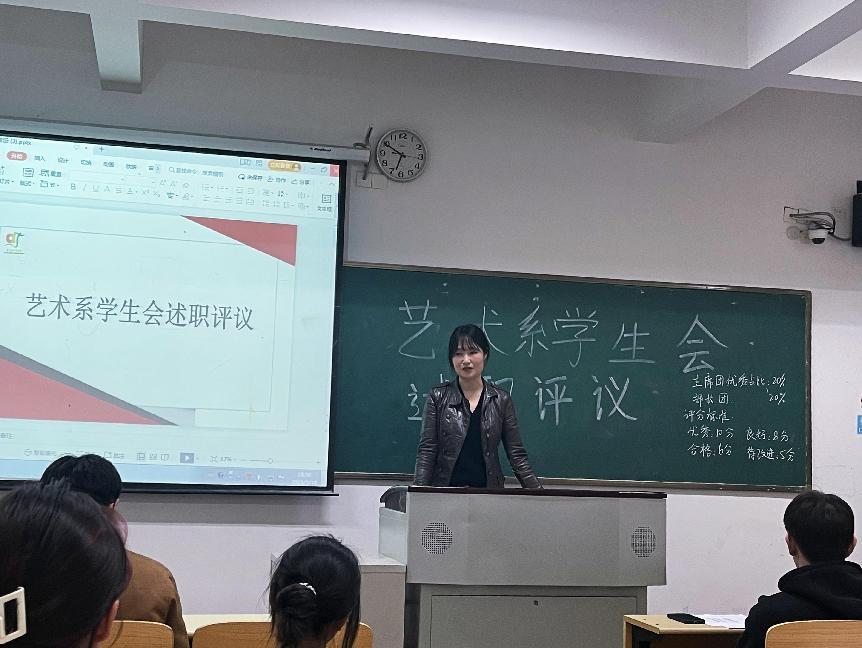 会上,学生会主席团,部长团以及团支部依次进行述职报告,各部门负责人围绕上学期工作情况,自身存在不足以及对新学期的期望展开描述。最后,刘婧娴老师对艺术系团学工作给予高度肯定,对新学期工作提出新要求,也希望各部门负责人能够承担起培养接班人的重任,继续传承为同学服务的思想,全心全意为同学服务。