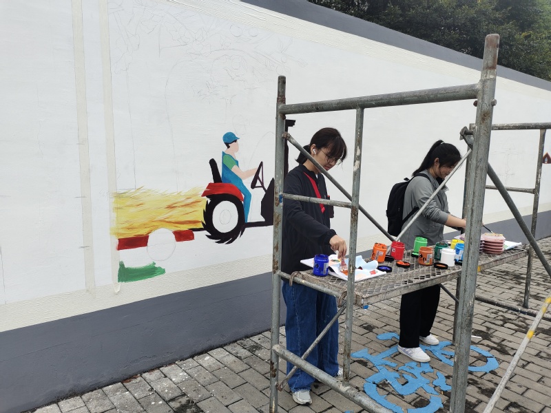 志愿始于心,奉献在于行,乡村振新,行胜致远,在骄阳似火的年纪,同学们用画笔描绘美丽斜桥镇,赋能乡村振兴。弯腰、抬臂、起手、落笔、上色,画笔在光影跳跃,墙绘成为斜桥镇一道亮丽的风景线。