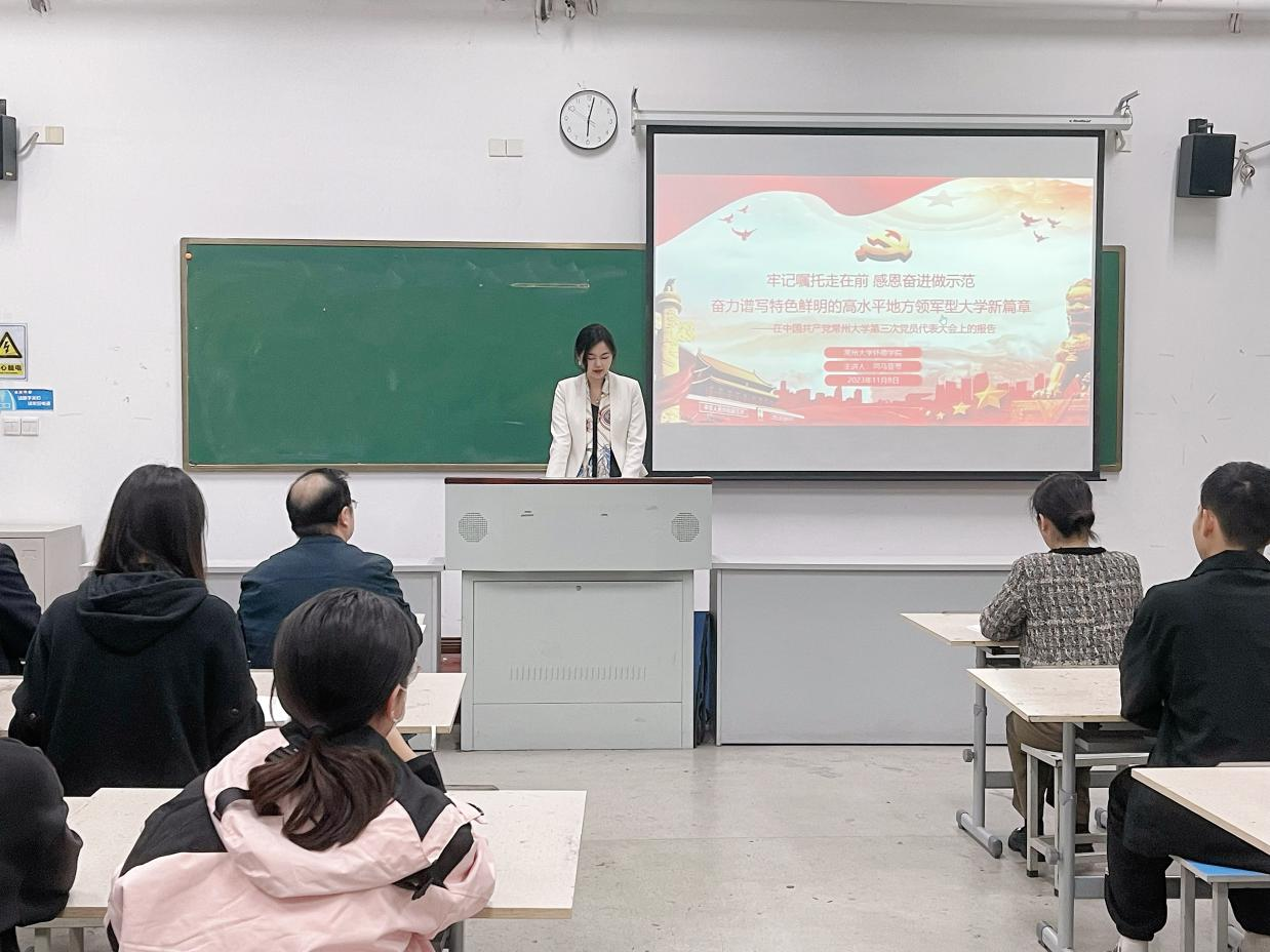 11月8日下午,艺术系党总支召开专题学习会议,传达学习中国共产党常州大学第三次代表大会会议精神。艺术系全体教职工、学生党员参加。会议由中国共产党常州大学第三次党员代表大会代表、艺术系党总支副书记司马亚琴主讲。