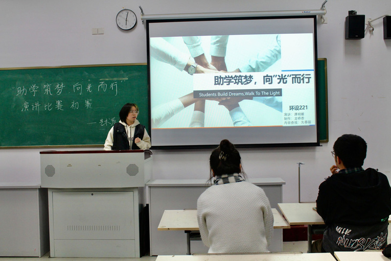 为加强资助宣传,提高政策知晓度,落实“资助育人、立德树人”的工作,展示在国家资助下可以自由追梦怀德学子的蓬勃朝气、积极进取和刻苦奋斗精神,11月13日下午5点,艺术系在B209举行“助学筑梦,向光而行”演讲比赛初赛。艺术系团总支书记帅博文、资助指导老师孙明成、学生会主席郭美孜、自律中心宣传部部长王淇芃、产设201欧阳瑛杰担任此次比赛评委,比赛由赵思闽、李娜主持。