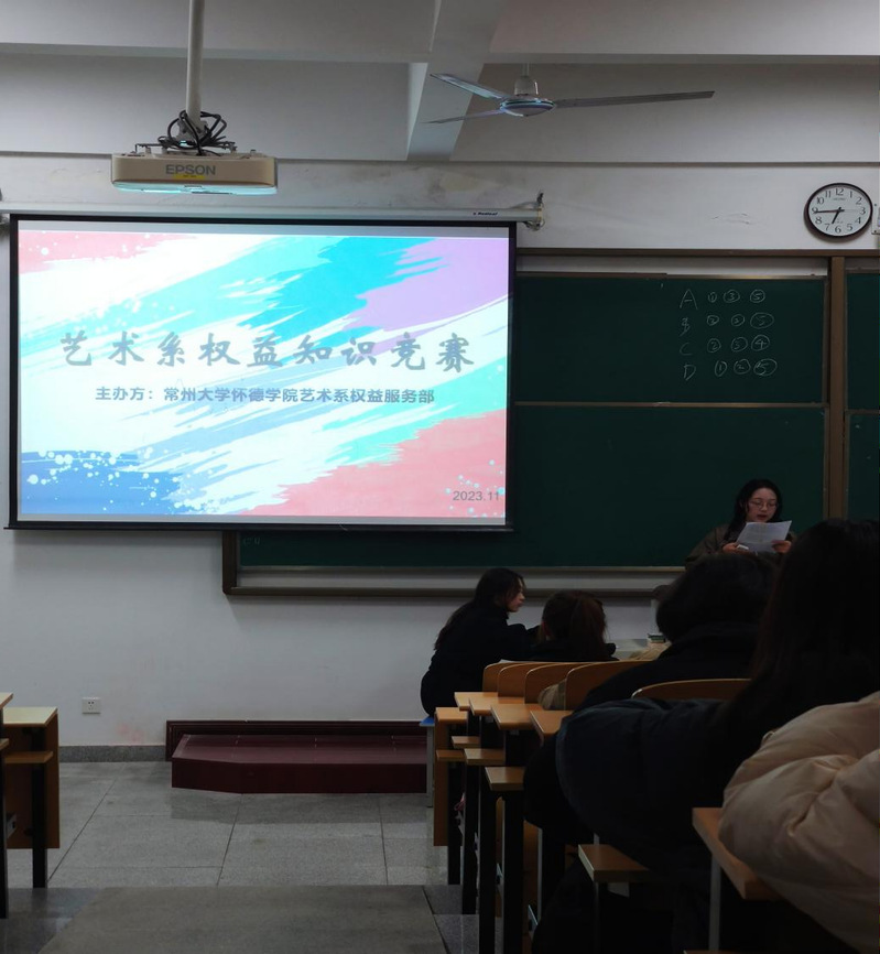 为了丰富学生生活,提高学生的理性维权意识,增强学生对权益知识的了解与认识,在拓展学生视野与知识储备的同时营造良好的维权氛围,艺术系在2023年11月24日和26日分别开展了权益知识竞赛初赛和决赛。此次活动由艺术系权益服务部举办,艺术系全体学生共同参与。