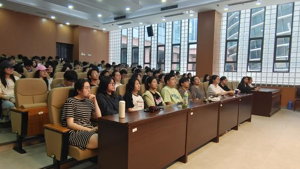 讲座中,黄昱女生结合专业知识、工作体验,从展览展示原理、展陈设计一般流程、优秀案例分析三个角度切入,结合新颖的设计理念和最近展示技术,向同学们进行了细致讲解。
