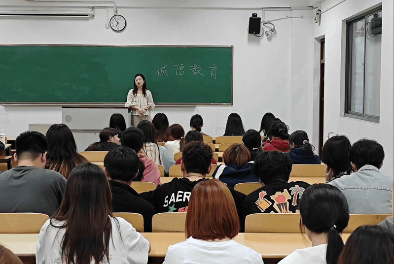 在此次班会中,辅导员刘英啸首先强调了诚信不仅是对知识的尊重,更是对自身品德的检验。接着请了同学来分享自己的学习心得和诚信考试的经验,最后也明确告知了考试违纪的处罚以及后果,希望学生们能够在期末考试中自觉遵守考场纪律,以真实的水平展现自己的学习成果此次诚信教育活动的开展,为即将到来的考试打下了坚实的诚信基础,激励着学生们以诚信为本,展现出自己的真实水平。
