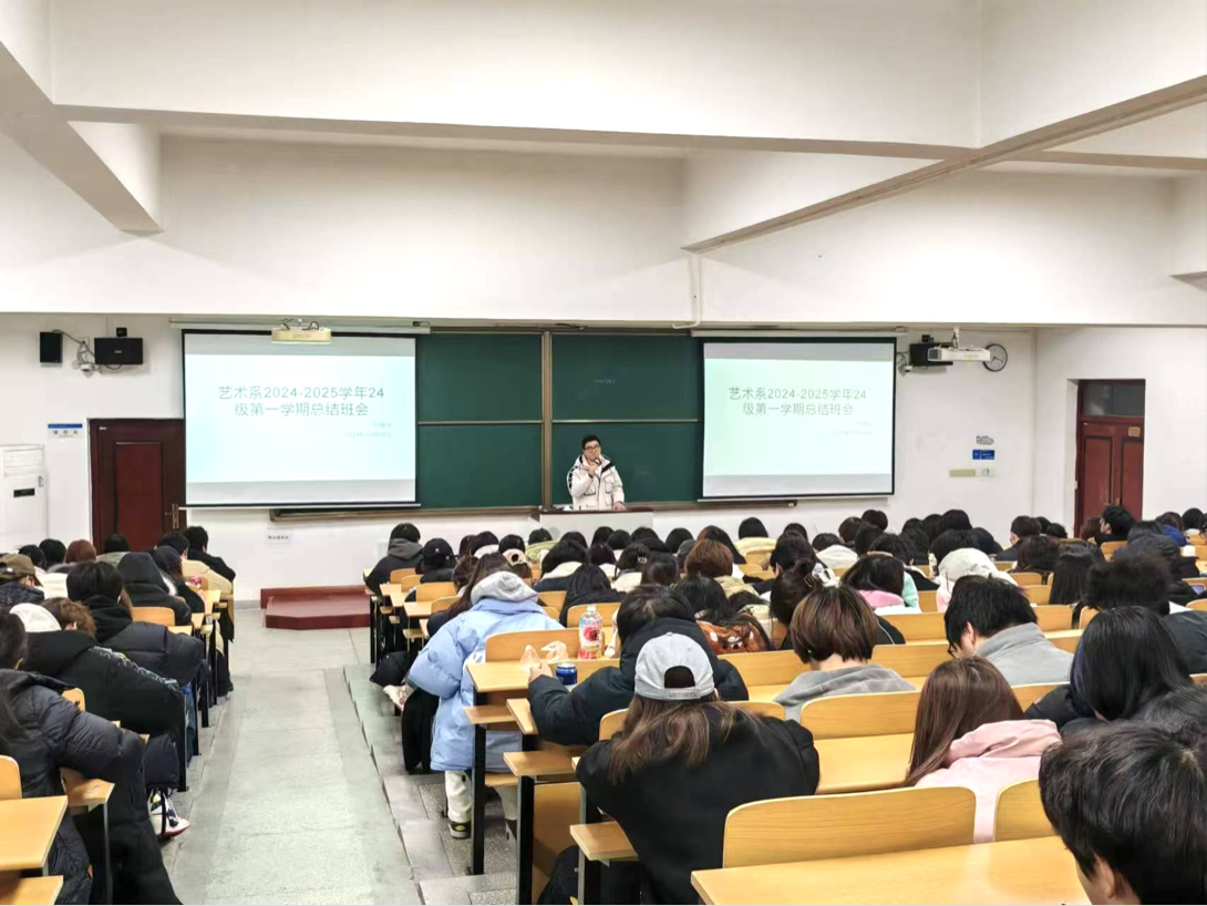 1月2日,艺术系24级新生于A1阶梯教室顺利召开了第一学期总结班会。本次班会由辅导员孙明成老师主持,全体24级艺术系学生参加。