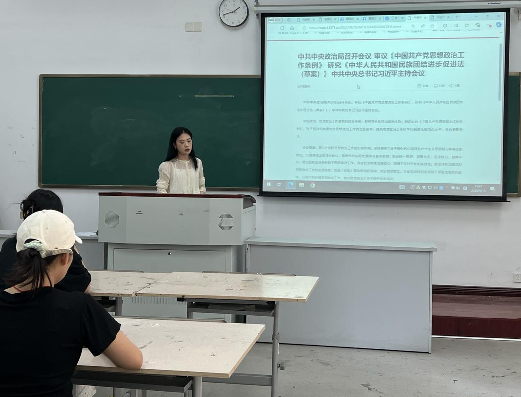 2025年9月17日下午,艺术系学生党员在B209组织学习了中共中央政治局会议精神。会议由刘英啸老师主持,全体党员参会。