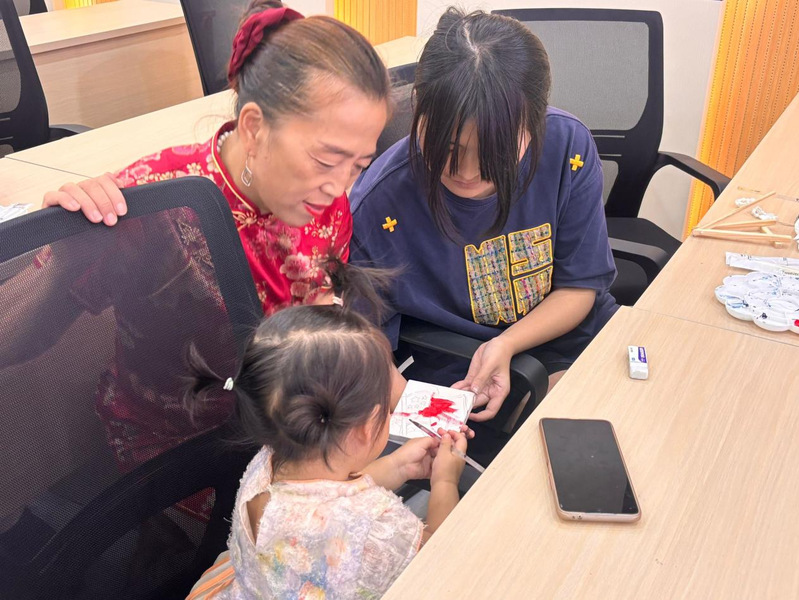 活动当天,牧城社区内热闹非凡,社区居民与常州大学怀德学院艺术系学生党支部的志愿者们齐聚一堂,共同投入到肌理画的创作中。肌理画以其独特的立体质感与创作自由度,成为了连接居民与艺术、情感与国家的桥梁。