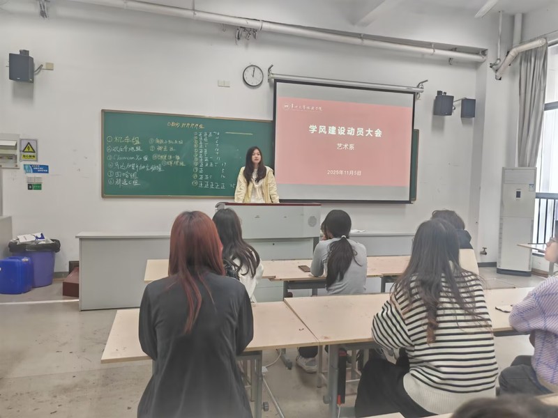 2025年11月5日,艺术系在B210教室隆重召开学风建设月动员大会,系党总支书记司马亚琴、全体辅导员老师及各班学生骨干齐聚一堂,共同开启以厚植学风根基,赋能艺术成长为主题的学风建设专项行动。
