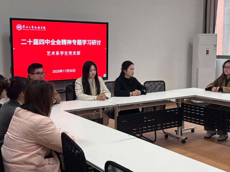 2025年11月30日,艺术系学生党支部在B208教室召开2025年下半年新发展对象专题学习研讨会,深入学习二十届四中全会精神。艺术系党总支书记司马亚琴主持会议,组织员刘英啸、辅导员孙明成出席。