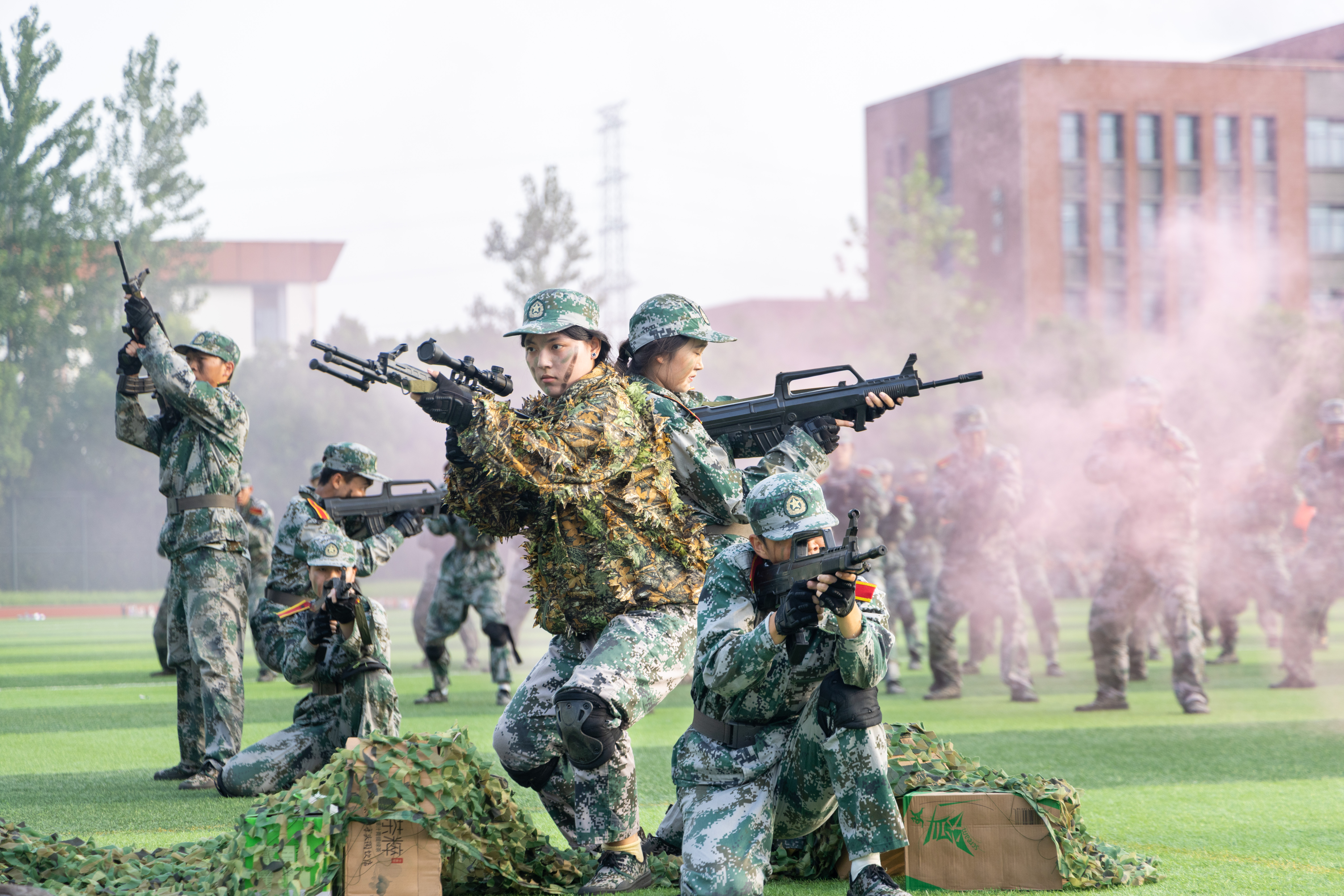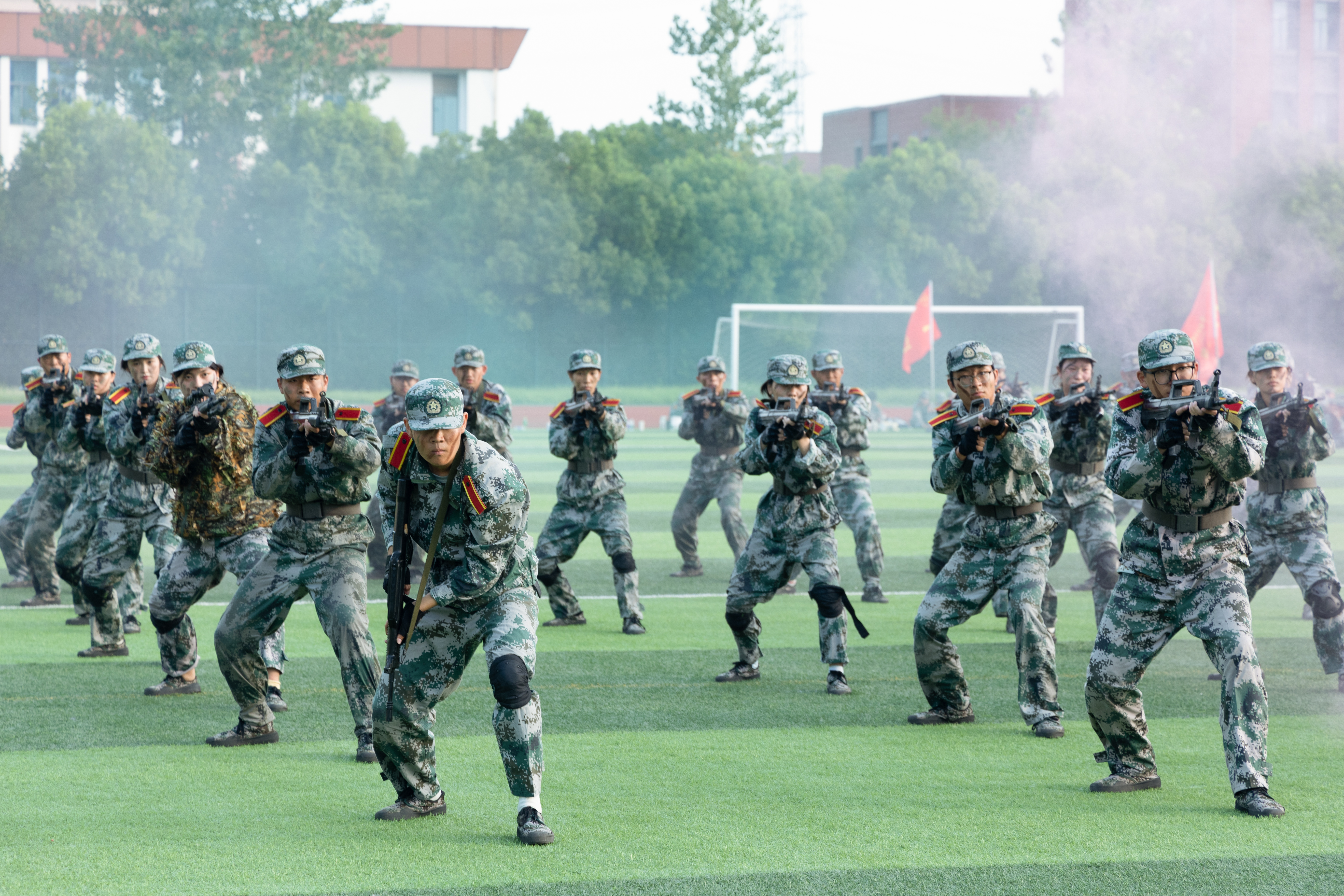 弥漫的硝烟中,战术综合演练方阵如离弦之箭冲出。刚猛威武的军体拳、变化多端的擒敌拳、干净利落的应急棍术,每个项目都是一道独特的风景线,共同绘就了2025级新生的青春群像。