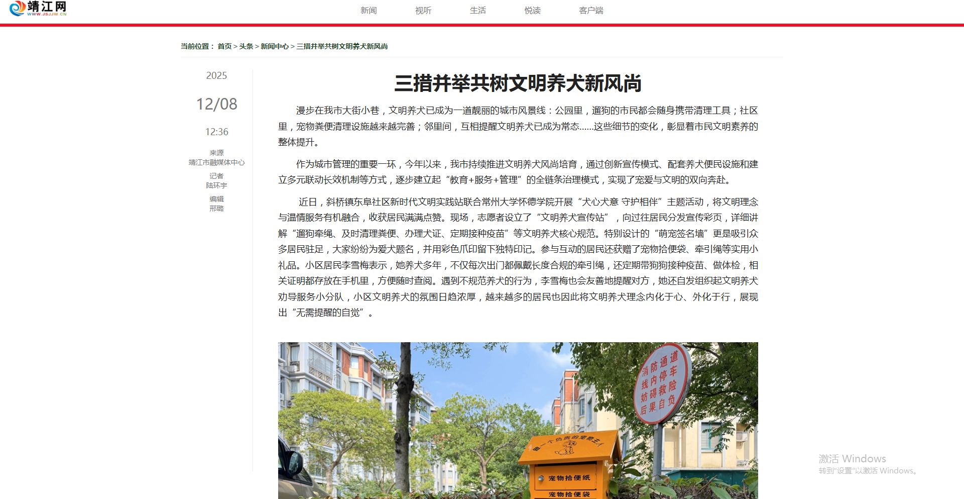 一根牵引绳,牵出的是责任与担当;一把清理铲,铲出的是文明与温暖。每一位文明养犬的市民,都在用自己的实际行动妆点着这座城市,让靖江不仅有天蓝地绿的外在美,更有文明友善的内在美。