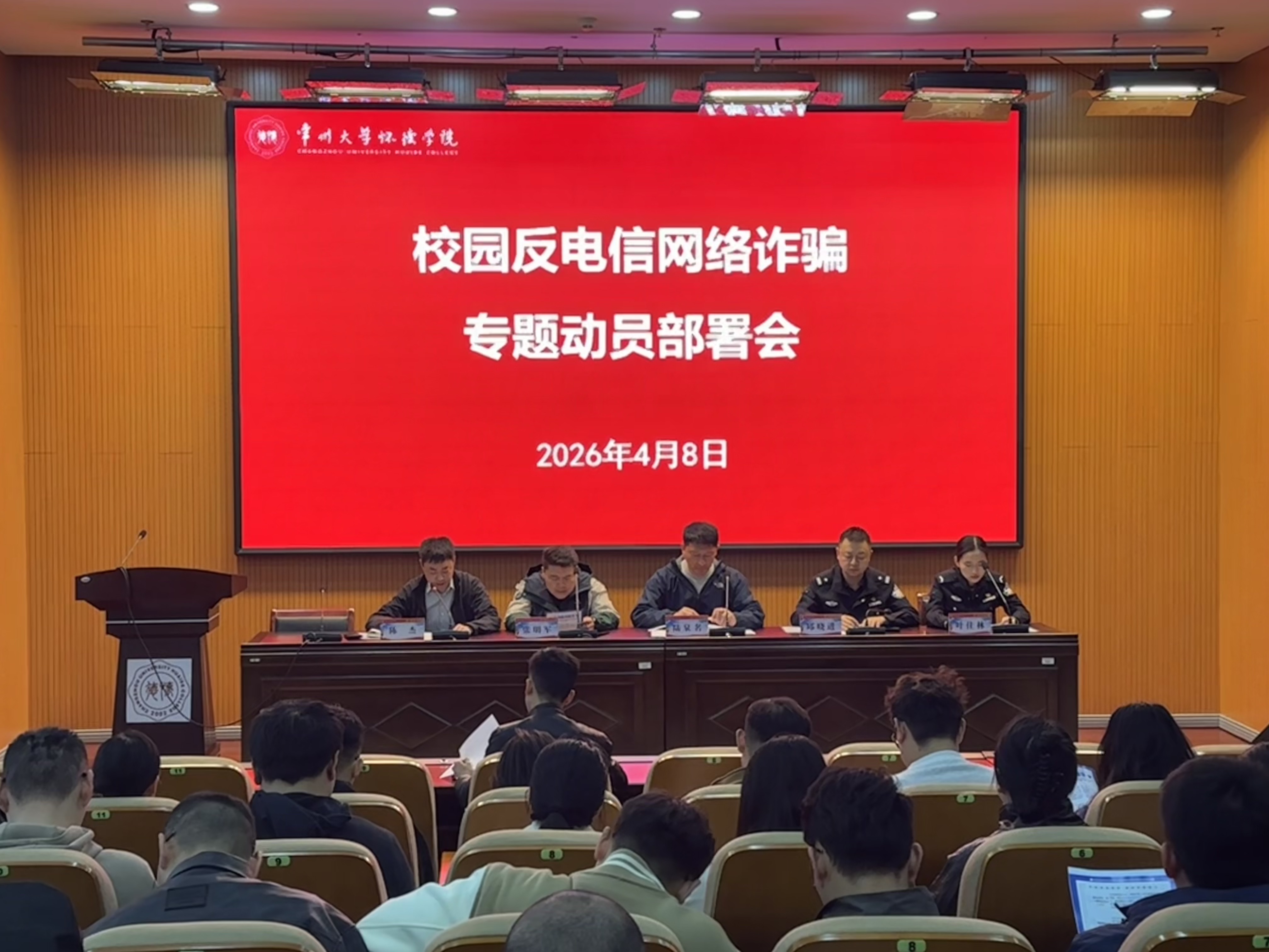 为切实增强师生安全防范意识和识骗防骗能力,有效遏制校园电信网络诈骗案件高发态势,4月8日上午,学院召开校园反电信网络诈骗专题动员部署会。院长助理陆泉名、靖江市公安局新港派出所教导员邱晓进出席会议并讲话。学生工作处、安全保卫处负责人,各系部学生工作副书记,驻校民警及辅导员、校园网格员参加会议。会议由保卫处陈杰主持。